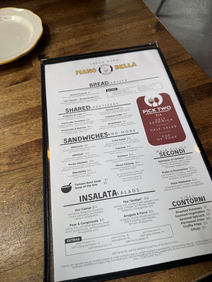 Introducing the Menu at Mano Bella - Uptown
